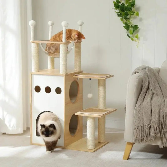 Design simple mais efficace : Moins de fioritures, plus de stabilité. Un arbre à chat épuré est souvent plus solide qu'un modèle très chargé.